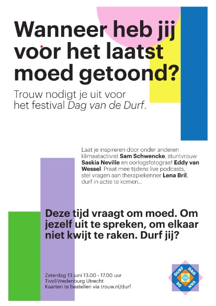 Presentator, theatermaker en columnist Eveline van Rijswijk gaat bijzondere gesprekken aan over durf met onder anderen klimaatactivist Sam Schwencke, stuntvrouw Saskia Neville, schrijver Lieke Knijnenburg, arts Salih El Saddy en oorlogsfotograaf Eddy van Wessel.